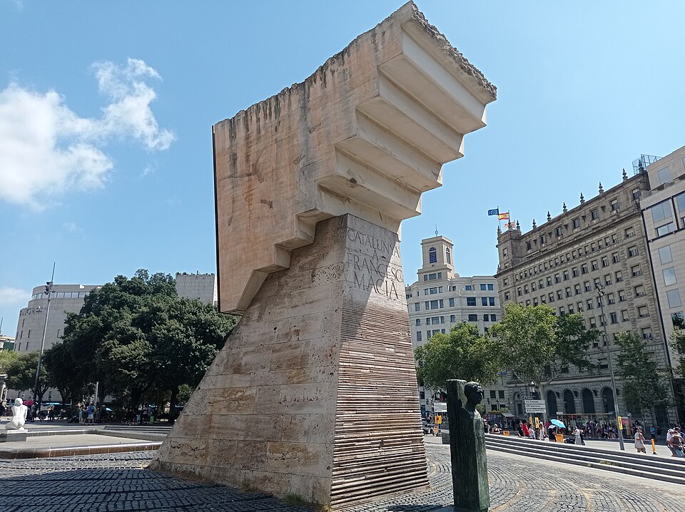 Entre las esculturas que adornan la plaza, la más llamativa es sin duda el Monumento a Francesc Macià, obra de Josep Maria Subirachs inaugurada en 1991.