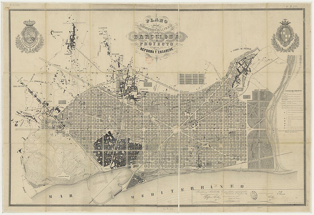 En 1859 presentó su proyecto de Ensanche (Eixample), basado en un estudio riguroso de las condiciones de vida de los ciudadanos. Cerdà propuso una ciudad donde el diseño no se guiara por los intereses de las élites, sino por criterios racionales: higiene, movilidad, luz, ventilación y espacio verde.