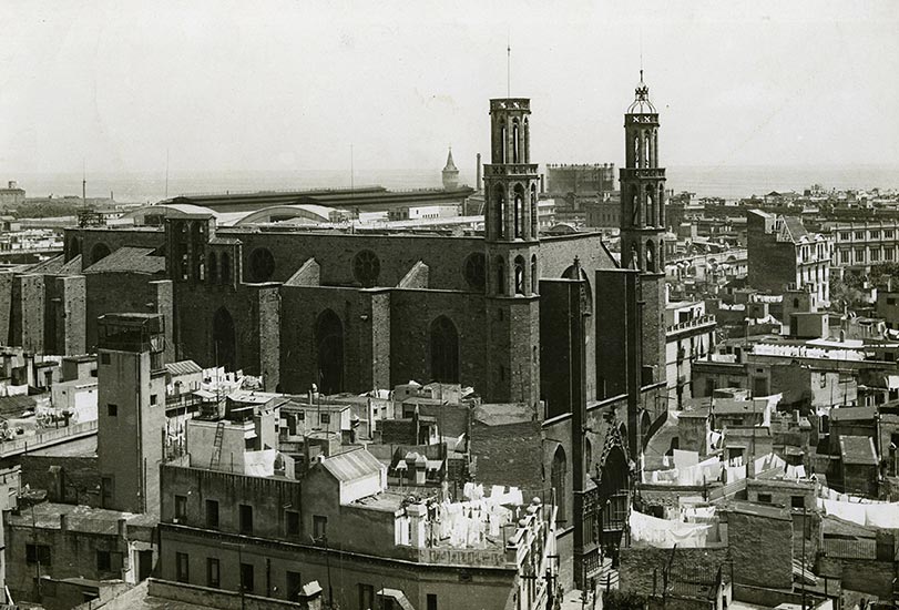 La Basílica de Santa María del Mar fue construida entre 1329 y 1383, en un momento en que Barcelona vivía una etapa de esplendor económico. La ciudad, capital marítima de la Corona de Aragón, era un punto clave del comercio mediterráneo. Esta bonanza se reflejó en una verdadera revolución urbana y arquitectónica. Muchos edificios antiguos fueron derribados y sobre sus cimientos se construyeron otros nuevos, más amplios, más altos, más luminosos.