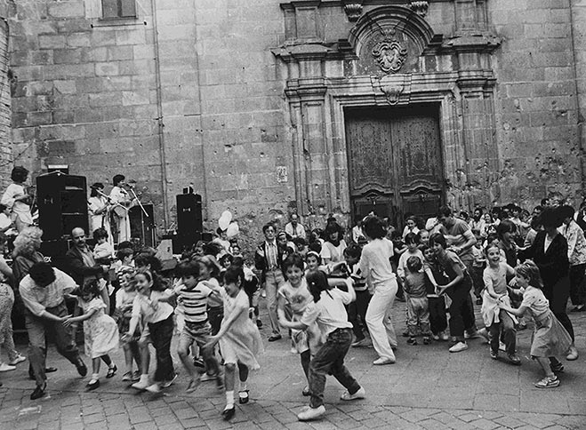 El 30 de enero de 1938, un bombardeo alcanzó la plaza y mató a 42 personas, la mayoría niños que se refugiaban en la iglesia y en la escuela anexa. La explosión dejó las huellas en la piedra que todavía hoy pueden verse en la fachada de la iglesia de Sant Felip Neri: marcas irregulares, heridas abiertas que nunca se borraron como recordatorio silencioso.