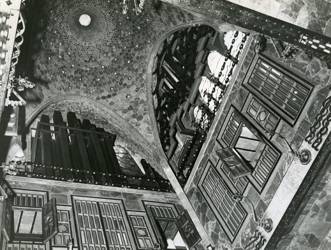 Uno de los grandes retos fue el espacio: la parcela era pequeña para un palacio de estas dimensiones. La solución de Gaudí fue construir en vertical. El mejor ejemplo es el Salón Central, concebido como sala de conciertos, que ocupa tres plantas y está coronado por una cúpula parabólica. Esta cúpula, perforada para dejar entrar la luz, crea un efecto casi cósmico: un planetario natural dentro del corazón del Raval.