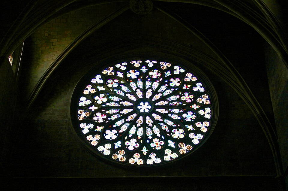 Uno de los elementos más destacados es su rosetón, de 10 metros de diámetro, el más grande de Cataluña. El original, del siglo XIV, se perdió en 1936, durante la Guerra Civil, cuando la iglesia fue incendiada. La explosión del rosetón fue devastadora, pero pudo ser reconstruido gracias a los dibujos que el arquitecto modernista Josep Maria Jujol —colaborador de Gaudí— había encargado a sus alumnos unos años antes.